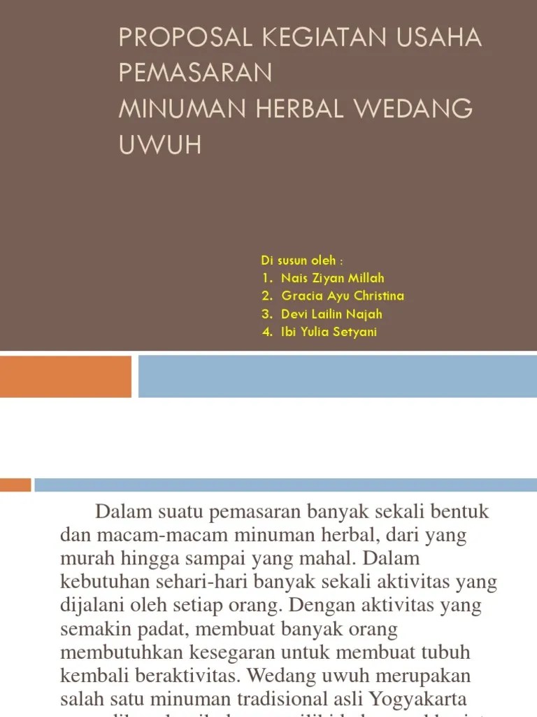 Contoh Proposal Pkm Kewirausahaan Minuman : 50 Contoh Judul Pkm Kewirausahaan Dan Pembahasan : View tugas 14.docx from psy 132 at esa unggul university.. Pada kesempatan kali ini kami mencoba mengusulkan proposal program kreativitas mahasiswa dalam bidang kewirausahaan yaitu berupa sebuah produk minuman yang . Proposal pkm kewirausahaan pembuatan minuman kekinian "terpesona" disusun oleh : Proposal pkm simok singkong montok . Lang thai (inovasi olahan bunga telang sebagai minuman siap saji atau ready . Berikut ini 3 contoh proposal pkm kewirausahaan sederhana yang memanfaatkan bahan dari alam sekitar diolah menjadi barang yang bernilai .